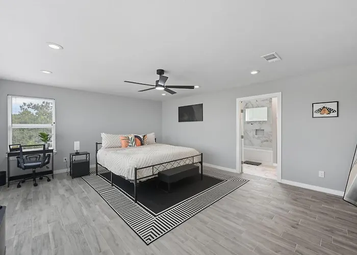 Pousada Modern 3 Bedroom Retreat On River With Dt Skyline View Dallas oferece proximidade com locais da cidade como o Trinity Park Church of Christ, localizado a 5 minutos de distância a pé. Com jacuzzi e banheira quente, a propriedade fica a 3.1 km do Trinity View Park.
